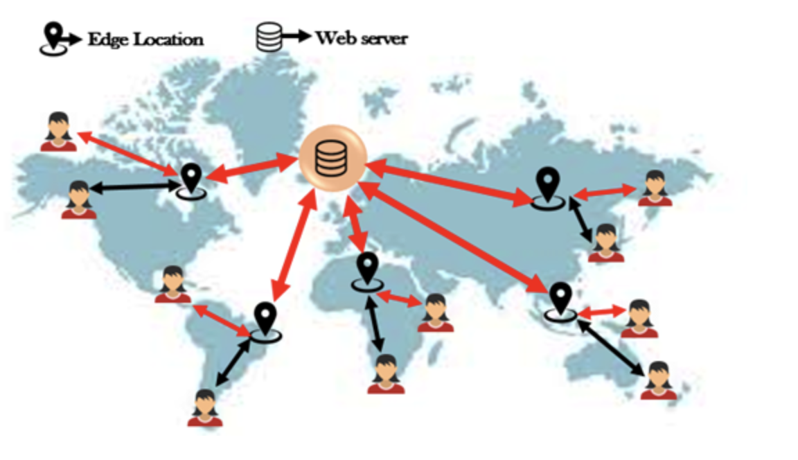 예시를 들면 뉴욕에 있는 사용자가 영국의 서버에 호스팅된 업체의 웹사이트를 보고 싶어 한다면 ,해당 사용자가 뉴욕에서 영국까지 대서양을 가로질러 요청을 보내면 웹 사이트의 콘텐츠 로딩시간을 길어질 것이다. 따라서 CDN은 이러한 문제를 해결하기 위해 런던 웹 사이트 콘텐츠를 캐싱해 전 세계 여러곳에 저장해두어 뉴욕에 있는 사용자에 해당 콘텐츠를 전송한다.